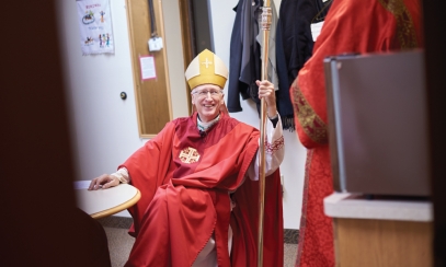 “I was blown away. I wanted to learn everything I could about Christianity.” He was starting from scratch, having had no exposure to church growing up. “I didn’t know what a Mass was. I thought it was a wake.” After he attended his first Mass, at St. Paul’s parish in Owosso, he was too intimidated to approach the priest, so he asked the first lay person he saw, “What do I have to do to become Catholic?” She was more than happy to answer, since she was the OCIA director!